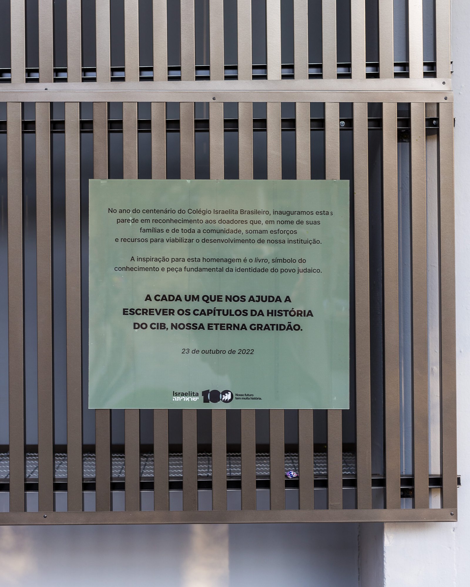 Um projeto para homenagear as pessoas que colaboraram na construção e renovação do espaço escolar ao longo dos 100 anos de história do colégio. Como símbolo, o livro. Cada lombada tem gravado o nome de um doador, criando uma biblioteca para enaltecer a generosidade e fortalecer esse valor da cultura judaica.