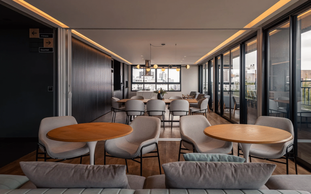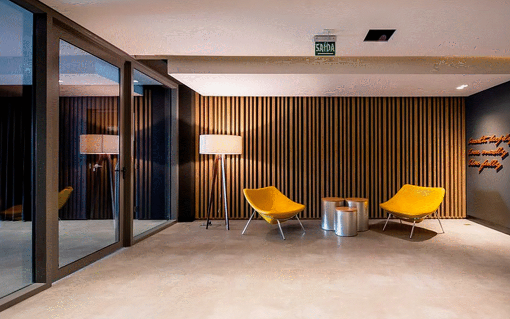O Praça Nilo é um empreendimento de apartamentos tipo studio e lofts, localizado em região nobre e com todas as unidades voltadas para a praça em frente. Para os interiores, buscamos uma estética atemporal, alinhada à arquitetura do edifício, onde o perfil jovem dos moradores não fosse traduzido em modismos. O projeto de sinalética tira partidos dos volumes e linhas, horizontais e verticais, presentes na fachada do empreendimento. Além disso, a proposta visa uma grande integração entre a informação e a arquitetura, utilizando-se da mesma paleta de cores e materiais dos interiores.