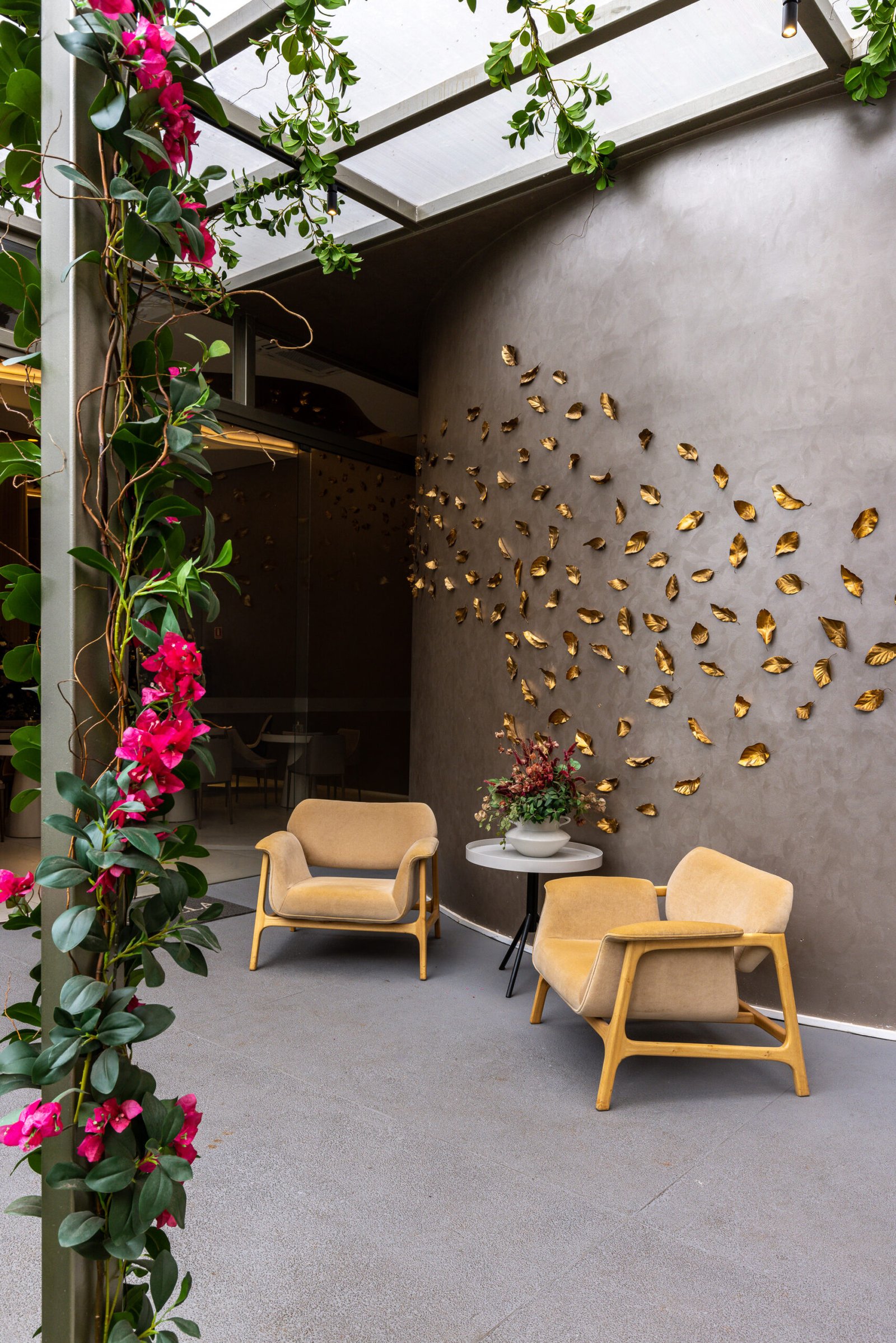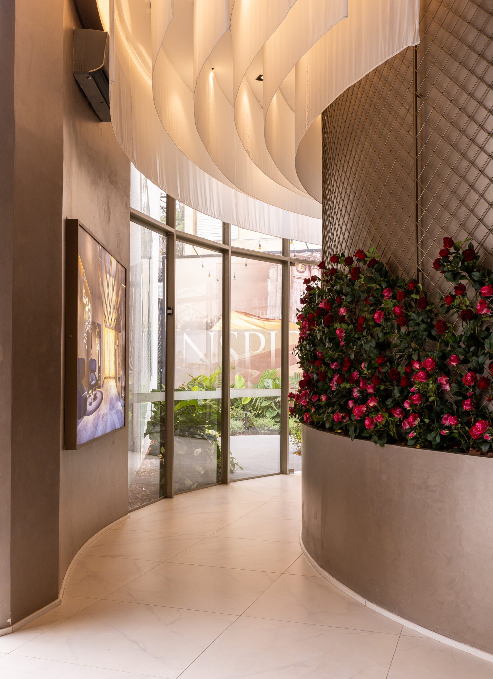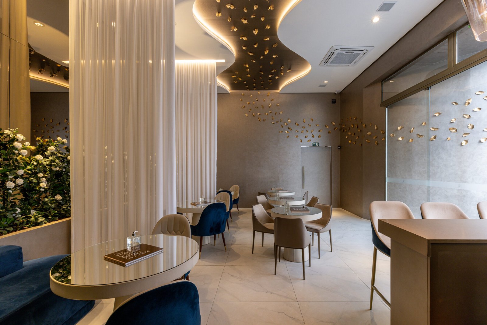 O projeto explora a ideia de percurso como elemento narrativo, revelando gradualmente a experiência do espaço e do produto. A composição se inspira no formato das joias e perfumes, com ângulos que definem novas espacialidades e promovem uma relação sensorial com o ambiente.