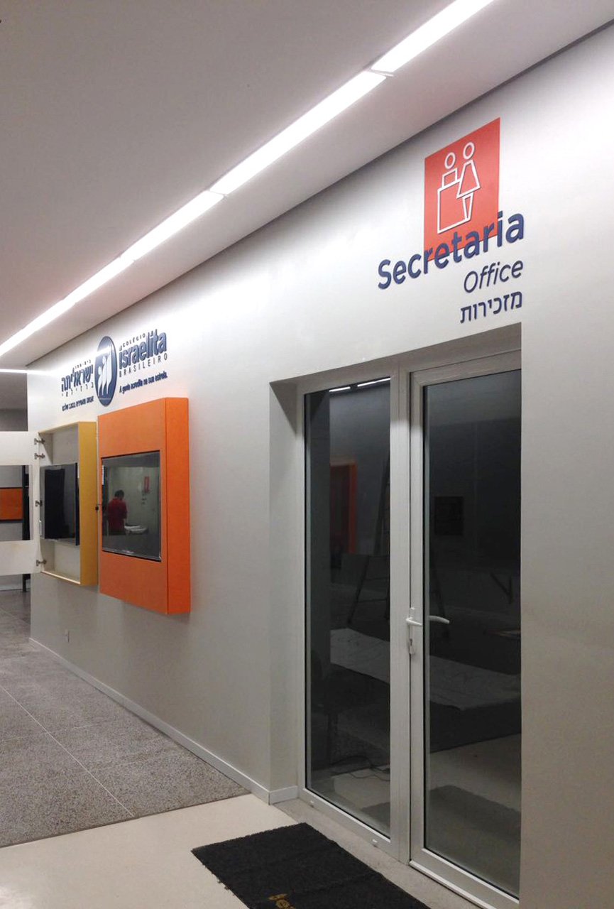O projeto de sinalética do Colégio Israelita Brasileiro tem como elemento principal o quadrado, como representação das partes de um todo múltiplo que forma essa comunidade escolar. A partir das cores institucionais, essas partes se multiplicam e crescem, demonstrando a força de um ambiente plural, unido e sempre em transformação. Pictogramas e tipografias equilibradas, em três idiomas, garantem a legibilidade, o aspecto pedagógico e a representação da identidade sólida dessa instituição de mais de 100 anos.