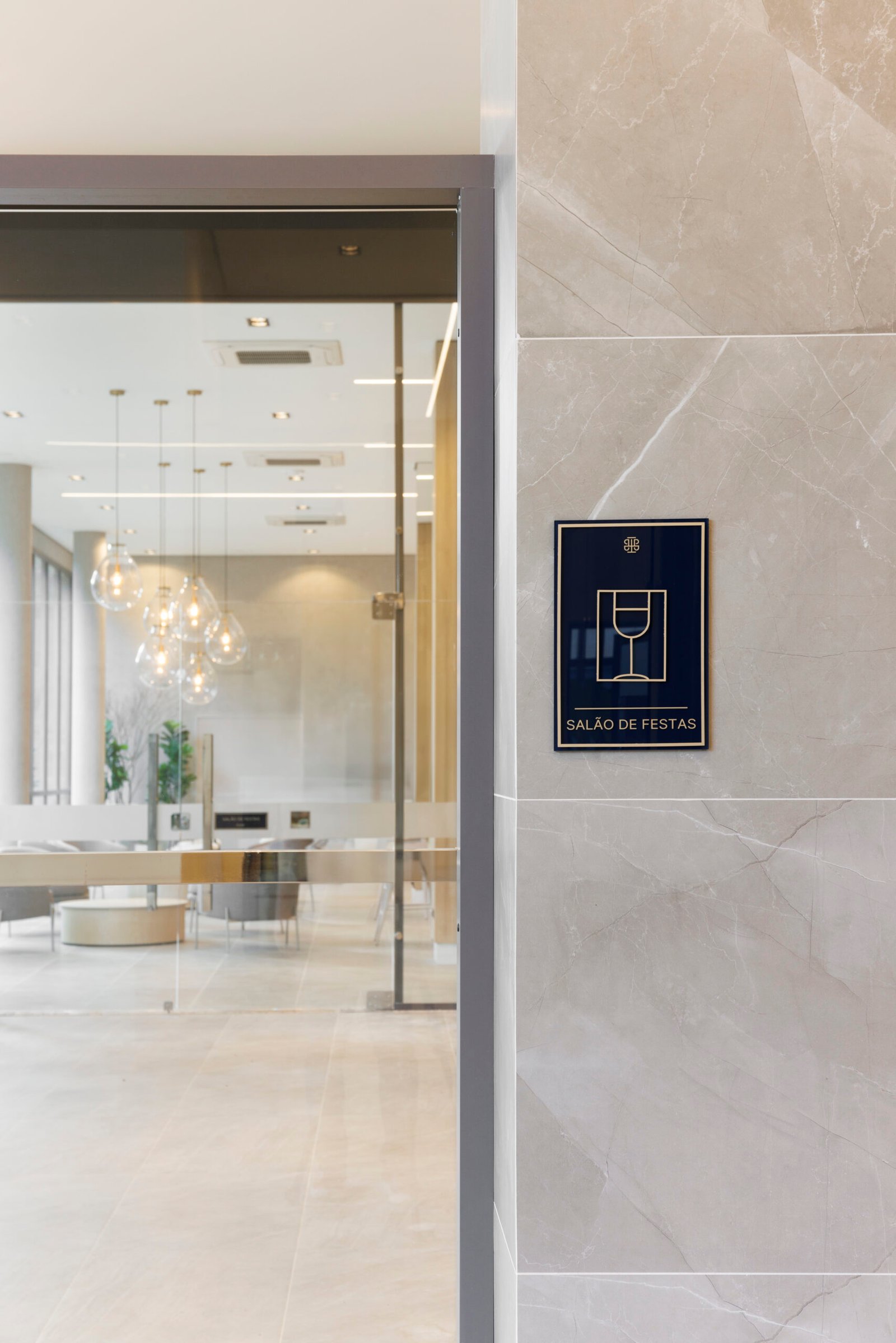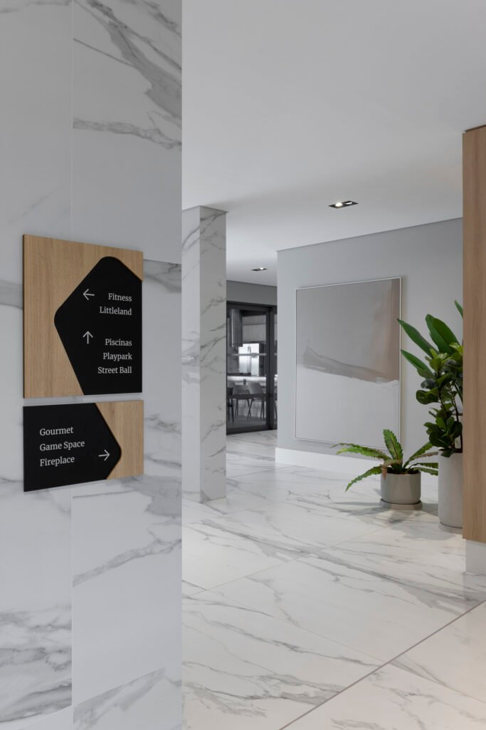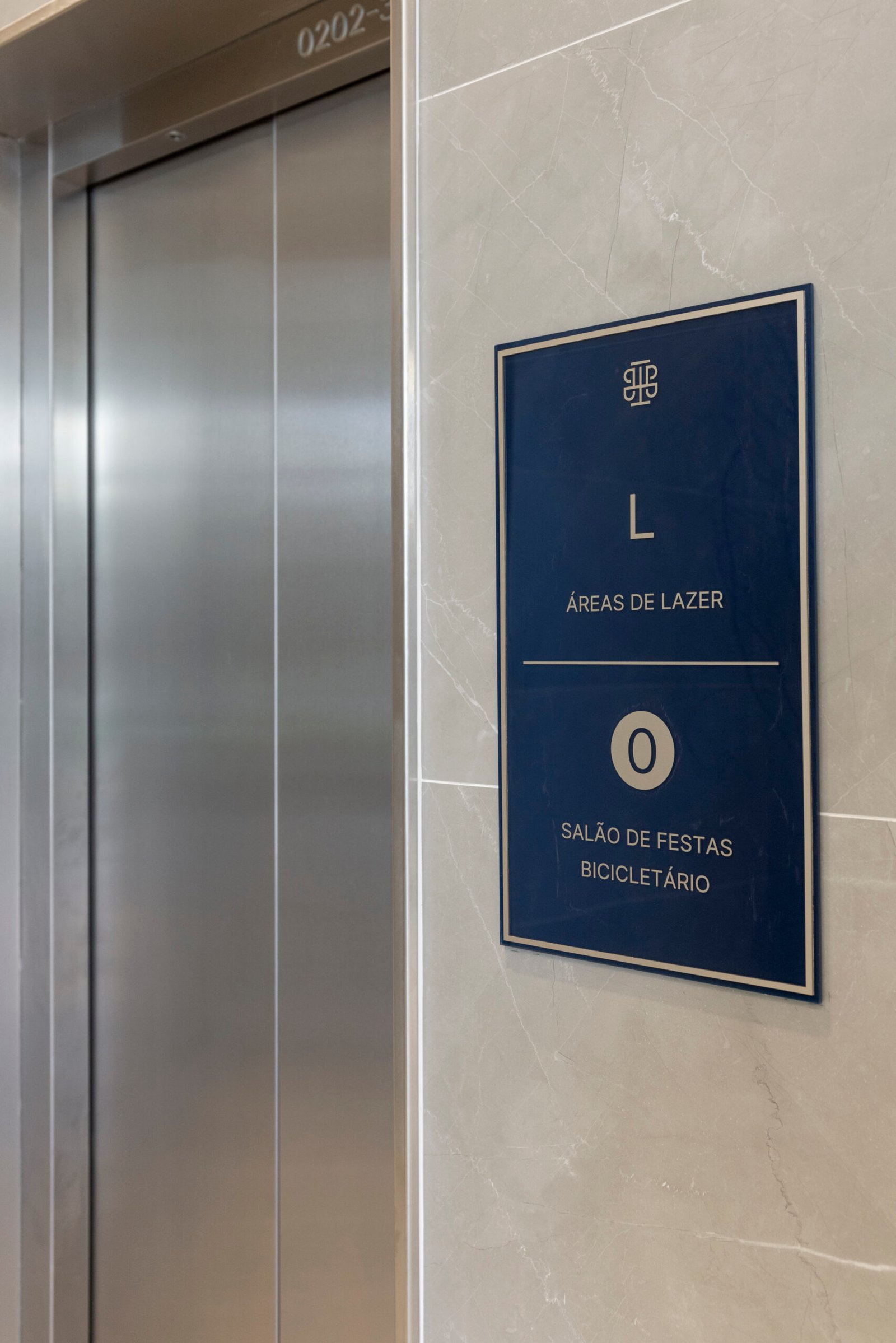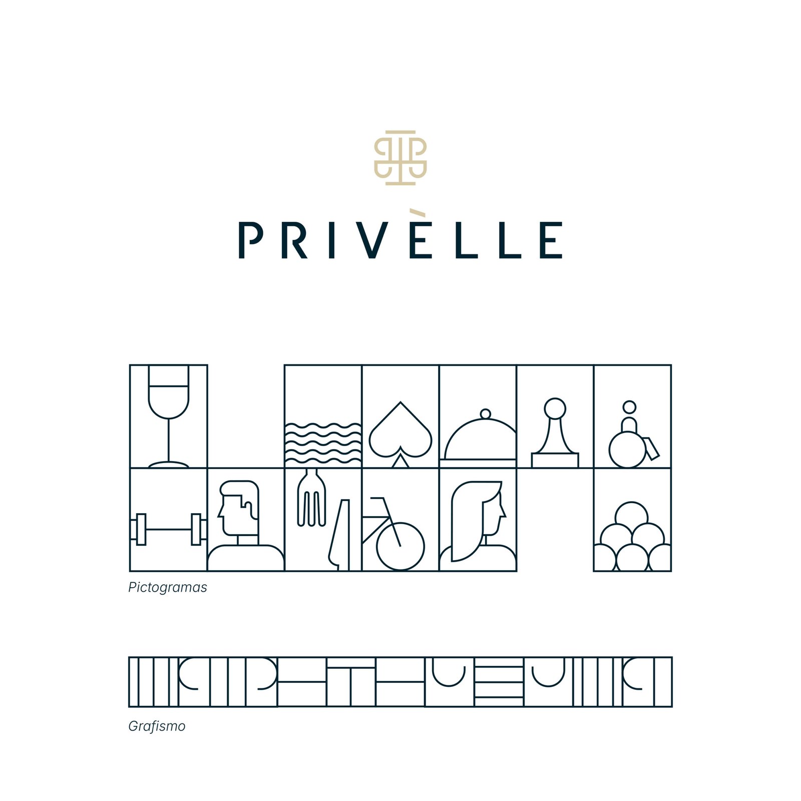 O Privèlle é um empreendimento residencial de alto padrão, trazendo atributos de exclusividade e sofisticação. A partir da simetria presente em sua marca e de suas cores elegantes – o azul profundo e o dourado envelhecido – desenvolvemos peças também simétricas e trazendo os tons da campanha para os ambientes. Os grafismos – explorados no bicicletário – e os pictogramas criados dão personalidade ao projeto, ajudando no deslocamento dos usuários ao mesmo tempo em que reforçam a identidade do empreendimento.