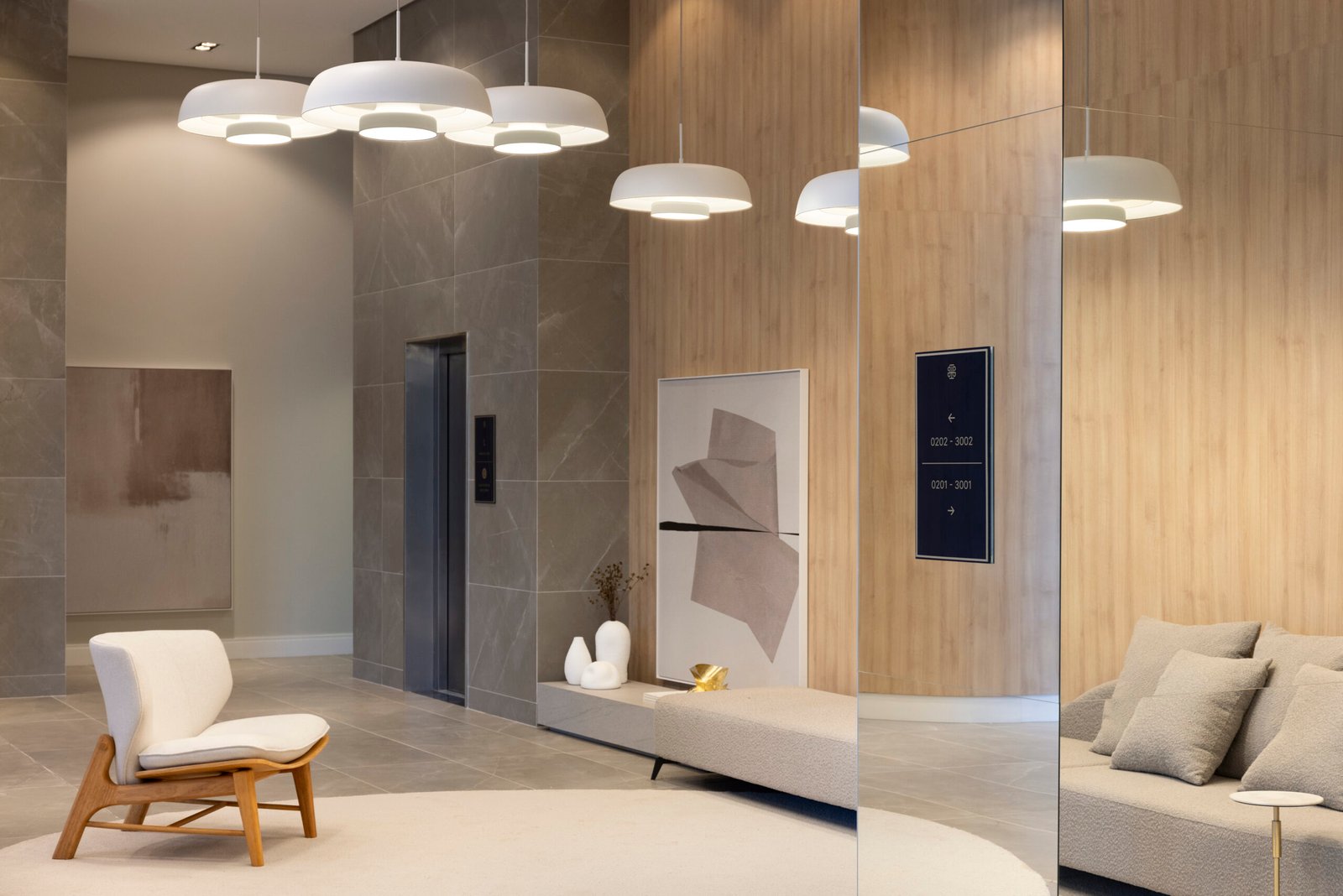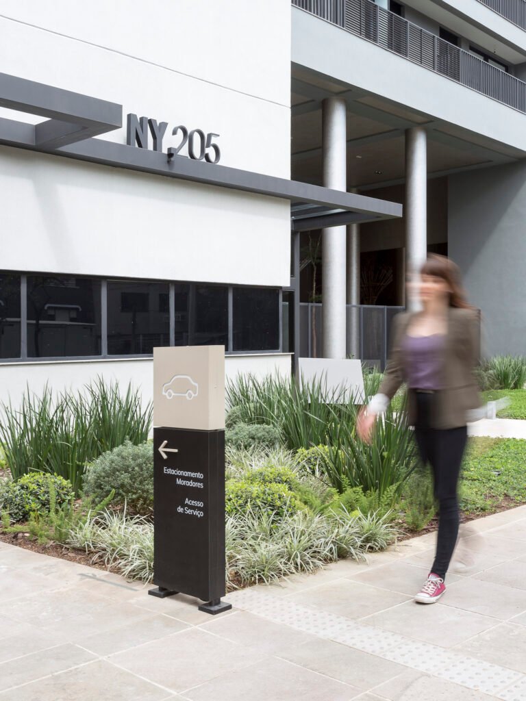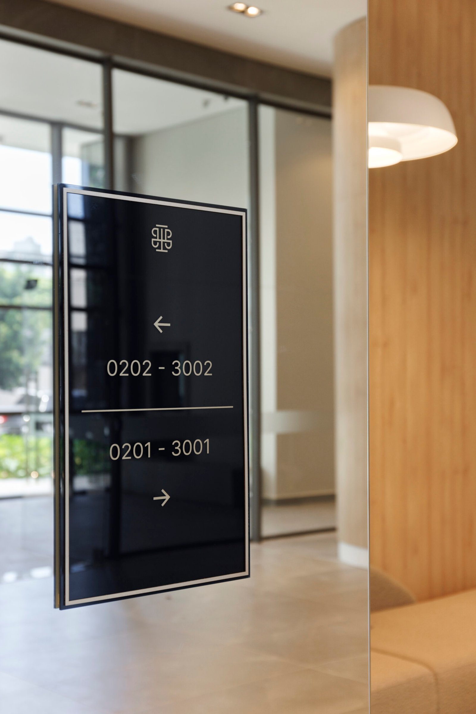 O Privèlle é um empreendimento residencial de alto padrão, trazendo atributos de exclusividade e sofisticação. A partir da simetria presente em sua marca e de suas cores elegantes – o azul profundo e o dourado envelhecido – desenvolvemos peças também simétricas e trazendo os tons da campanha para os ambientes. Os grafismos – explorados no bicicletário – e os pictogramas criados dão personalidade ao projeto, ajudando no deslocamento dos usuários ao mesmo tempo em que reforçam a identidade do empreendimento.